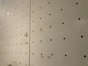 ギャラリーにはピクチャーレールがあり、壁面が有孔なのでフックをつけて飾ることも可能です。ピクチャーレールとフックは無料でお借りできます。