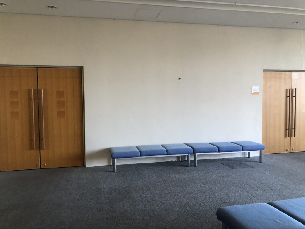 エレベーター前から写した写真です。研修室で研修中の方がいるのでお静かに願います。