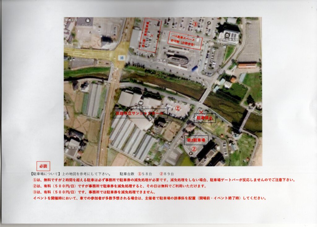 当日、ホールでイベントがあるらしく、満車の可能性があります。その場合は第2駐車場に駐車をしてください。